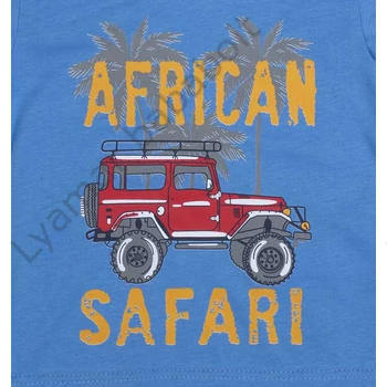 Rövid ujjú fiú póló Jeep mintával Öltöztesse kisfiát ebbe a közép kék rövid ujjú pólóba, melyet egy igazi kis kalandor számára terveztek! A póló kiváló minőségű, 100% pamut anyagból készült, mely puha, légáteresztő, és bőrbarát - azaz tökéletes választás a melegebb napokra. A mintája pedig izgalmassá és játékossá teszi a viseletet, egyben kiváló alapja lehet a játéknak és a tanulásnak is. A póló könnyen kezelhető, jól mosható, szín- és formaálló, így hosszú ideig megőrzi szépségét. És ami a legfontosabb: mindezt hazai gyártó biztosítja, így vásárlásával a magyar termékeket támogatja. Minőségi magyar termék Anyaga: 100% pamut, Minőség: I. osztály