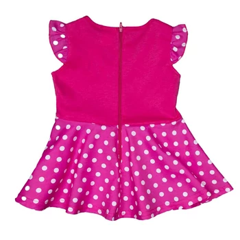 Fodros ujjú kislány nyári ruha Minnie egér mintával Egy igazi lányos álom ez a fodros ujjú pörgős nyári ruha! A pink pöttyös színvilágban pompázó ruhácska a meleg nyári napokon is tökéletes választás lesz kislányodnak. A könnyedén viselhető, 100% pamutból készült nyári ruha az elején vidám Minnie egér mintával díszített, mely minden kislányt elvarázsol. A pörgős pöttyös szoknyarész és a színben harmonizáló szalag igazán csinossá teszi a ruhát, így garantáltan minden szem rajta lesz. Eredeti Disney termék, minőségi magyar munka, amelyben kislányod kényelmesen és boldogan fogja tölteni a nyári napokat, a ruha nem csak szép, de rendkívül kényelmes is. Minőségi magyar termék Anyaga: 100% pamut, Minőség: I. osztály