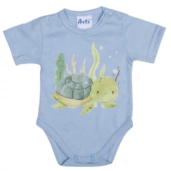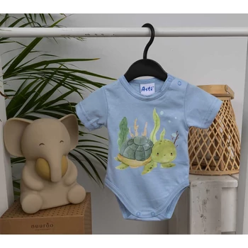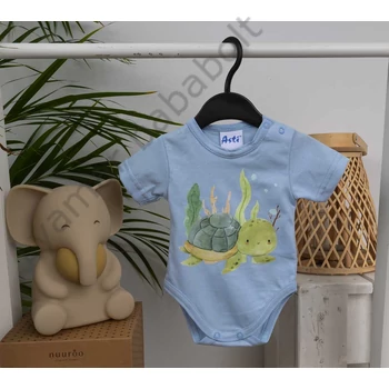 Rövid ujjú baba body vagány Teknős mintával A kék színű, rövid ujjú baba body vagány teknős mintával varázsolja még édesebbé kisbabáját. A vidám teknős minta garantáltan mosolyt csal az arcára minden kisgyermeknek és szülőnek egyaránt. Kiváló választás lehet mindennapi viseletként, hiszen könnyen kombinálható más ruhadarabokkal. A 100% pamut anyagból készült body puha, kényelmes viseletet biztosít a baba érzékeny bőrének, miközben megóvja azt az irritációtól. A termék könnyen tisztítható, nikkelmentes patenttal készül, így az erre érzékeny babák bőrét sem irritálja. Válaszd ezt a minőségi magyar terméket, amely első osztályú minőségben készült, és öltöztesd babádat a legjobbba! Minőségi magyar termék Anyaga: 100% pamut, Minőség: I. osztály