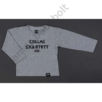 Hosszú ujjú póló" Csillag Született" mintával Az Ön gyermekének garantáltan tetszeni fog ez a hosszú ujjú póló, amelyen "Csillag Született" minta díszeleg. A póló nem csak kényelmes viselet a mindennapokban, de a Drk mintának köszönhetően a játékra is inspirál. A minőségi magyar termék garantáltan ellenáll az aktív gyermekjátéknak, és hosszú időn keresztül megőrzi szépségét és kényelmét. A póló a magyar termék, így biztos lehet benne, hogy gyermekének bőrével érintkező anyag kiváló minőségű és bőrbarát. Minőségi magyar termék Anyaga: 100% Pamut Minőség: I. osztály