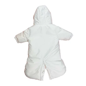 Öltöztesd melegen és stílusosan kisbabádat ezzel a vízlepergetős bundazsákkal, amely ideális választás a hideg téli hónapokra! A fehér színű, mackós hímzéssel díszített overál mindkét nem számára tökéletes választás. Kívül a bundazsák anyaga vízlepergető, belül pedig polár bélés gondoskodik arról, hogy a kicsi mindig melegben és szárazban maradjon. A 100% poliészter anyag tartós és könnyű, ami biztosítja a hosszú távú használatot. Kiváló minősége mellett a praktikum is fontos szempont volt a tervezés során: az alján található cipzár és patentok segítségével könnyedén feladható és nadrággá alakítható, így a pelenkázás is egyszerűbbé válik. A megadott életkor csupán irányadó, minden baba egyedi, ezért javasoljuk, hogy mindig a mérettáblázat alapján válassz!