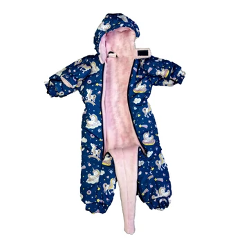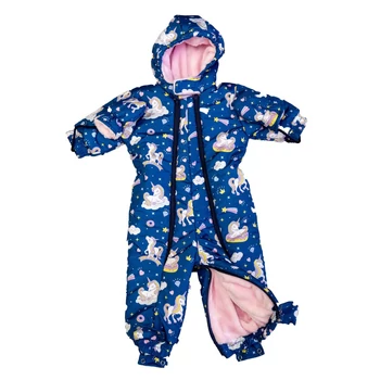 Egy igazán stílusos és praktikus választás a hideg hónapokra, ez cuki Unikornis mintás kapucnis overál. Az overál különlegessége, hogy bundazsákká alakítható, így a hideg téli napokon is tökéletesen megóvja a kicsiket a fagyos időtől. A vízlepergetős anyaga pedig biztosítja, hogy a hó és az eső sem árthat a kis játszadozóknak. A bélése a kényelmet és a meleget biztosítja. Az elöl található cipzár segítségével könnyedén bele tudja helyezni a babát, valamint a lábrész szétnyitható kialakítása révén a baba mozgását sem gátolja. Mindezek mellett cuki mintája teszi igazán divatossá és aranyossá ezt az overált. Tökéletes választás azok számára, akik nem akarnak kompromisszumot kötni a stílus és a kényelem között.