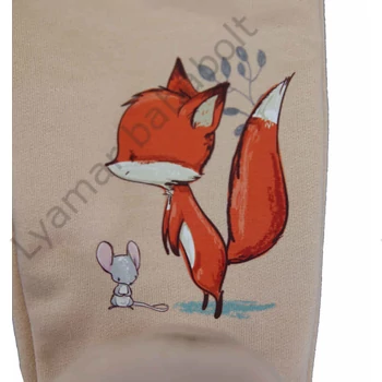 Belül bolyhos pamut kisfiú baba nadrág rókás mintával Puha, meleg és kényelmes - ez a belül bolyhos pamut kisfiú baba nadrág a legjobb választás a hidegebb hónapokra. Homok színű nadrágban a kis huncutok ellenállhatatlanul cukik lesznek, míg a rókás minta még a legkomorabb napokon is mosolyt csal az arcukra. Az elasztikus gumis derék könnyen alkalmazkodik a babák mozgásához, biztosítva a tökéletes illeszkedést és kényelmet. A lábfejes kialakítás pedig segít megtartani a meleget a kicsik lábán. Könnyen kezelhető, szín- és formatartó minőségi anyagból készült, így tökéletes választás azok számára, akik szeretnének egy praktikus, mégis stílusos darabot a babájuk szekrényébe. Könnyen kezelhető és mosható, szín- és formaálló. I. osztályú minőségű, kiváló magyar termék. Anyaga 65% pamut és 35% poliészter