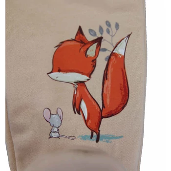 Belül bolyhos pamut kisfiú baba nadrág rókás mintával Puha, meleg és kényelmes - ez a belül bolyhos pamut kisfiú baba nadrág a legjobb választás a hidegebb hónapokra. Homok színű nadrágban a kis huncutok ellenállhatatlanul cukik lesznek, míg a rókás minta még a legkomorabb napokon is mosolyt csal az arcukra. Az elasztikus gumis derék könnyen alkalmazkodik a babák mozgásához, biztosítva a tökéletes illeszkedést és kényelmet. A lábfejes kialakítás pedig segít megtartani a meleget a kicsik lábán. Könnyen kezelhető, szín- és formatartó minőségi anyagból készült, így tökéletes választás azok számára, akik szeretnének egy praktikus, mégis stílusos darabot a babájuk szekrényébe. Könnyen kezelhető és mosható, szín- és formaálló. I. osztályú minőségű, kiváló magyar termék. Anyaga 65% pamut és 35% poliészter