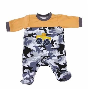 Terep színű traktoros mintával belül bolyhos baba rugdalózó
