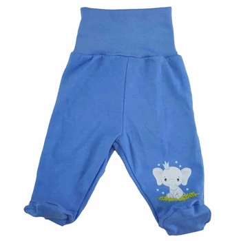 Ez az elefánt mintás baba nadrág a kisbabánk kényelmét és stílusát egyaránt szem előtt tartja. A középkék színű, 100% pamutból készült nadrág igazi alapdarabja lehet a babaruháknak. Könnyedén kombinálható más ruhadarabokkal, így mindig gondoskodhatunk arról, hogy a kisbabánk kényelmesen és divatosan öltözködjön. A gumis derék a pelenkacsere könnyedségét szolgálja, miközben nem szorítja a baba pocakját, így a kicsi mindig kényelmesen érezheti magát benne. A lábfejnél található kiscipős rész pedig praktikus és cuki kiegészítője a nadrágnak. Az elefánt nyomás a lábszáron pedig még egyedibbé teszi ezt a ruhadarabot. Könnyen kezelhető és jól mosható, színe és formája hosszú időn át megmarad. Büszkék vagyunk arra, hogy ez a minőségi magyar termék a babáinknak készül. I. osztályú minőséggel, hogy a legjobbat adhassuk nekik.