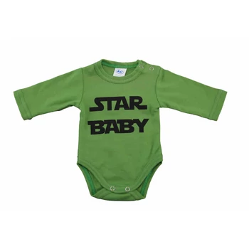 A "Star baby" feliratos hosszú ujjú baba body igazi sztárrá varázsolja a kisbabát. A zöld színű, bababarát 100% pamut anyagból készült ruhadarab kényelmes viseletet biztosít a legkisebbek számára. A minőségi, formatartó anyag jól bírja a gyakori mosást, így hosszú ideig megőrzi eredeti színét és formáját. A vállán található patentos kialakítás megkönnyíti a baba öltöztetését, míg a lába közötti patentos megoldás a gyors peluscserét teszi lehetővé. Ezzel az apró, de praktikus funkcióval időt és energiát spórolhatnak a szülők. Ez a termék a magyar minőséget képviseli: I. osztályú anyagból készült, nikkelmentes patenttal, amely nem vált ki allergiás reakciót az erre érzékeny babáknál. Így nem csak a divatos, kényelmes viselet áll a középpontban, hanem a babák egészségének védelme is.