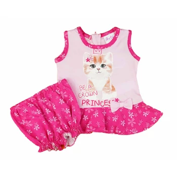 2 részes kislány nyári szett rövidnadrággal, tunikával cica mintával