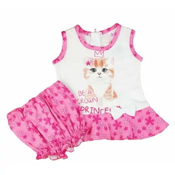 2 részes kislány nyári szett rövidnadrággal, tunikával cica mintával
