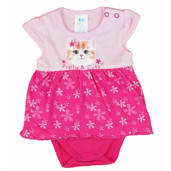 Rövid ujjú szoknyás baba body cuki Virágos cica mintával