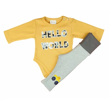 A vagány kisfiúknak semmi sem áll jobban, mint ez a 2 részes kisfiú szett. Az okker színű hosszú ujjú body és baba nadrág egyszerre stílusos és kényelmes. Kiváló minőségű pamut anyagból készült, amely puha és légáteresztő, így a baba egész nap komfortosan érezheti magát benne. A nadrág rugalmas pamutból készült, ami tökéletesen illeszkedik a baba mozgásaihoz és szabad mozgást biztosít számára. Minden részletre odafigyelünk, ezért a termékünk nikkelmentes patenttal készül, így az erre érzékeny babák sem fognak allergiás reakciót kapni. Ráadásul a szín- és formatartó anyagának köszönhetően hosszú ideig megőrzi szépségét, még számtalan mosás után is. Mindezt pedig hazai gyártóktól, a magyar minőség garanciájával. A kisfiúk imádni fogják viselni, az anyukák pedig örömmel veszik majd elő a szekrényből újra és újra!