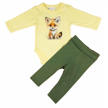 Légy trendi kisfiús anyuka a 2 részes Rókás szettel, amely tökéletes választás minden kisfiú számára. A szettben található hosszú ujjú body és nadrág garantáltan nagy kedvenc lesz, hiszen a puha pamut anyag és a rugalmas nadrág minden kaland során kényelmet és szabad mozgást biztosít a kisfiúknak. Az élénk sárga szín és a mókás róka minta pedig igazán vidámmá teszi a hétköznapi öltözködést. A szett könnyen mosható, szín- és formatartó anyagának köszönhetően hosszú ideig megőrzi eredeti szépségét. A termék nikkelmentes patenttal készül, így nem okoz allergiás reakciót az erre érzékeny csemetéknél. Válaszd a minőségi magyar termékeket, és öltöztesd gyermeked a legjobbba!