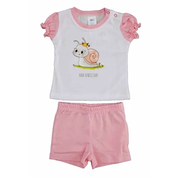 A kislányok nyári öltözködését finom, csigás mintával díszített kétrészes szettünk teszi igazán örömtelivé! A fehér színű felsőn trónoló cuki kis csiga garantáltan mosolyt csal mindenki arcára. A szett részei külön-külön és együtt is hordhatók, így variálhatóak a szettben rejlő stíluslehetőségek. A vékony, könnyű, 100% pamut anyagból készült ruhadarabok ideálisak a legforróbb nyári napokra is, hiszen garantáltan hűsítő viseletet biztosítanak. Az Asti műhelyében, itthon készült termékünk minőségi, könnyen kezelhető, szín- és formatartó anyagból készült, így biztos lehet benne, hogy hosszú időn át megőrzi eredeti szépségét. Tökéletes választás a nyári napokra, legyen szó akár a játszótérről, akár a családi kirándulásokról!