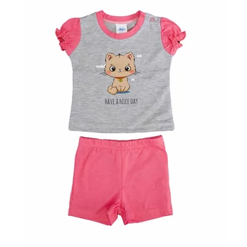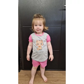 Vidám nyári kalandokhoz készült ez a 2 részes kislány szett, ami garantáltan elvarázsolja a kicsiket és a nagyokat egyaránt! A szett szürke színű, amely tökéletes alapot nyújt a szett központjában álló, cuki cicás mintának. A póló és a rövidnadrág együtt és külön is hordható, így tökéletes választás a változó nyári időjárásra. A könnyű, nyári pamutanyag biztosítja, hogy gyermeked még a legnagyobb kánikulában is kényelmesen érezze magát. Az Asti műhelyében készült szett minőségi, könnyen kezelhető, szín- és formatartó anyagból készült, így garantáltan hosszú ideig élvezheti a kicsi. És mindez tiszta, 100%-os pamutból, ami a bőrnek is jót tesz! Minőségi magyar termék, amit örömmel ajánlunk minden kislány számára, aki imádja a cicákat és a vidám, nyári színeket.