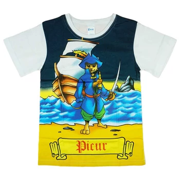A kis kalózoknak is szükségük van stílusos öltözékre! Ez a "Picúr és a kalózok" mintával ellátott rövid ujjú póló tökéletes választás minden kis kalandor számára. A póló fehér színű, ami kiemeli a rajta lévő vidám, színes mintát. Az anyaga 100% pamut, így kényelmes viselet lesz a nyári hőségben is. Az I. osztályú minőség garantálja, hogy a póló sok viselés és mosás után is megőrzi szép színét és formáját. A termék mérete 110-134 között változik, így bármelyik kis kalóznak ideális választás lehet. Az életkor csak irányadó, a legfontosabb, hogy a póló kényelmesen illeszkedjen a gyermekre.