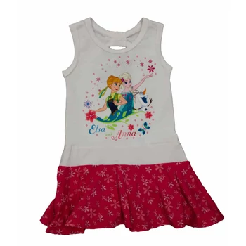 Mesélj a kislányodnak Elzáról, Annáról és Olaf-ról, míg ez a Disney Jégvarázs-Frozen ujjatlan gyerekruha viseli. A sötét rózsaszín háttér előtt a kedvenceid életre kelnek, miközben a pörgős szoknyarész garantáltan hatalmas mosolyt csal az arcára. A ruha kiváló minőségű pamutból készült, ami nem csak kényelmes viseletet biztosít a forró nyári napokon, de a mosások ellenére is megtartja élénk színét és formáját. A ruha mindennapi használatra és különleges alkalmakra egyaránt tökéletes választás. Készült Magyarországon és a Disney eredeti terméke. Anyaga: 90% pamut, 10% elasztán. Minőség: I. osztály. Varázsolj egy kis Disney mágia a mindennapjaitokba ezzel a gyönyörű ruhával!