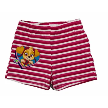 Kedves kislányoknak tervezett, csíkos, rövidnadrág, amit aranyos Mancs őrjárat mintával díszítettünk. A gondosan kiválasztott, természetes alapanyagok, mint a 90% pamut és a 10% elasztán, garantálják a kényelmet és az időtállóságot. A rugalmas gumírozott derék pedig biztosítja, hogy gyermeked mindig kényelmesen érezhesse magát ebben a rövidnadrágban. Ez a minőségi magyar termék, mely az I. osztály minősítéssel rendelkezik, tökéletes választás a melegebb napokra. Hadd legyen gyermeked a játék közben is stílusos ebben a kedves rövidnadrágban!