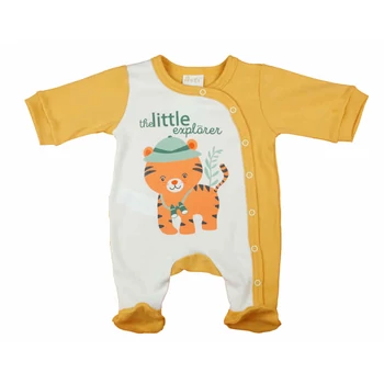Egy őszinte tigris mintával díszített, okkerszínű, hosszú ujjú rugdalózó, mely igazán különlegessé teszi a babád öltözetét. Ez a vékony, de melegítő pamut anyagból készült rugdalózó tökéletes választás a hűvösebb napokra. A minőségi magyar termék, melyet a Andrea Kft. gyárt, garantálja a tartósságot és a kényelmet. A rugdalózó anyaga 100% pamut, ami puha érintést és kiváló komfortérzetet biztosít a babának. A rugdalózó elöl patentos, így könnyen fel- és levehető, így a pelenkázás is gyerekjáték lesz. A termékben használt patentok nikkelmentesek, így azok nem okoznak allergiás reakciót még a legérzékenyebb bababőrön sem. Bátran válaszd ezt a rugdalózót, ha szeretnéd, hogy babád kényelmesen és stílusosan töltse a napjait.