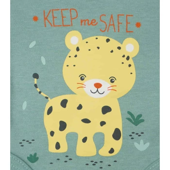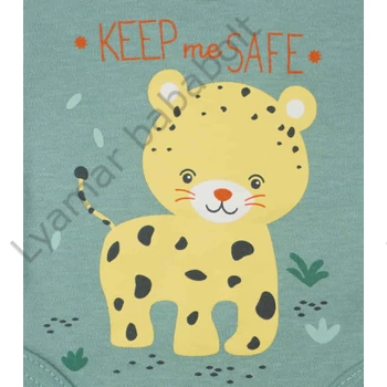Öltöztesd csemetédet ezzel a hosszú ujjú, tigris mintás bababodyval, amely igazi alapdarabja lesz babád ruhatárának. A tigris minta a zöld alapon igazán játékos és vidám, így garantáltan mosolyt csal mindenki arcára. Készült a bababody kiváló minőségű, 100% pamut anyagból, ami a gyakori mosások ellenére is megőrzi színét és formáját. A vállán található patent megkönnyíti a fel- és levételt, míg a lába közötti patentos megoldás a pelenkacsere gyorsaságát segíti elő. A body Magyarországon készült, így biztos lehetsz benne, hogy kiváló minőségű terméket vásárolsz. Az anyag I. osztályú, és a patent nikkelmentes, így a babák számára semmilyen allergiás reakciót nem vált ki. Adja hát át babájának a tigrisek erősségét és bátorságát ezzel a cuki bababodyval!