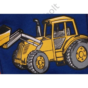 Ez a sötétkék színű, markoló mintás kisfiú szabadidőnadrág kiváló választás lehet a játékidőhöz, vagy akár az iskolába, óvodába is. A 100% pamut anyagának köszönhetően a nadrág könnyű, vékony és mégis tartós. A minta, mely egy sárga markolót ábrázol, az egyik száron található, ami igazán vidám és játékos megjelenést kölcsönöz a ruhadarabnak. A nadrág minőségét a magyar gyártás garantálja. Bátran ajánljuk ezt a kényelmes, strapabíró és divatos terméket, melyet kisfiad egész nap szívesen fog viselni.