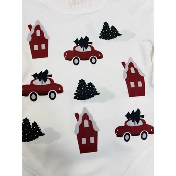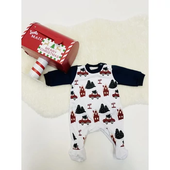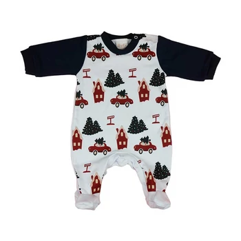 Belül bolyhos hosszú ujjú baba rugdalozó karácsonyi mintával