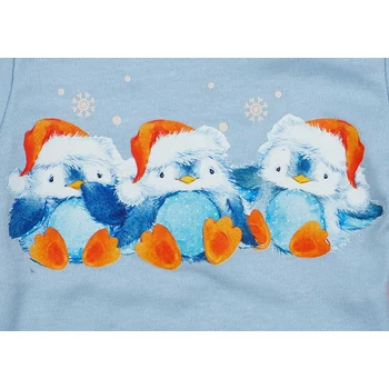 Baba body, amit egyszerűen imádni fog! A világoskék színű, hosszú ujjú baba body egy cuki karácsonyi bébi pingvin mintával kelti fel a figyelmet, ami garantáltan mindenkit elbűvöl. A 100% pamut anyagának köszönhetően puha és kényelmes viseletet biztosít a legkisebbeknek is. A minőségi magyar termék, első osztályú minőséget képvisel. Külön öröm, hogy a termék nikkelmentes patenttal készül, így az erre érzékeny babák is bátran viselhetik, nem vált ki allergiás reakciót. Tedd örömtelié a pici mindennapjait ezzel a bájos bodyval!
