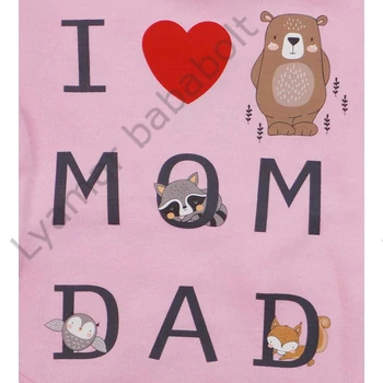 Egy igazán praktikus alapdarab, ami nem hiányozhat a kisbabák ruhatárából! Ez a rózsaszínű, feliratos hosszú ujjú baba body az "I love mom dad" felirattal nem csak cuki, de kényelmes is. A bababarát, 100% pamut anyagból készült body nem csak szín- és formatartó, de a gyakori mosásokat is jól bírja. A vállán található patentok megkönnyítik a baba öltöztetését, míg a lába közötti patentos megoldás a gyors peluscserét teszi lehetővé. Minőségi magyar termék, mely nikkelmentes patenttal készült, így az erre érzékeny babák is nyugodtan viselhetik. Vegye meg ezt a csodás body-t, hogy kisbabája mindig stílusos és kényelmes legyen!
