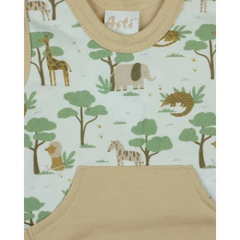 Egy igazán különleges darabot kínálunk, ami garantáltan elvarázsolja Önt és gyermekét egyaránt. Ez a homokszínű, ujjatlan baba rugdalózó egyedülálló állatfigurás mintával díszítve, amely édes és játékos hangulatot kölcsönöz a ruhadarabnak. A rugdalózóban rejlő praktikum a belső bolyhos kialakításban és a lábközötti patentban rejlik, amely megkönnyíti a pelenkázást. A rugdalózó tökéletesen kombinálható hosszú vagy rövid ujjú bodyval, így a legkülönbözőbb időjárási körülmények között is ideális választás. A minőségi magyar termék anyagösszetétele 65% pamut és 35% poliészter, ami garantálja a hosszú élettartamot és a kényelmet. A termék nikkelmentes patenttal készül, tehát nem okoz allergiás reakciót a nikkelre érzékeny babáknál. Egy igazán magas minőségű, gondosan tervezett és kivitelezett ruhadarab, amely minden babának örömet és kényelmet nyújt!