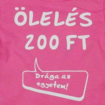 Ez a világos rózsaszín, hosszú ujjú baba body a szeretet üzenetét hordozza. Az "Ölelés 200 Ft" felirattal, ez a darab nem csak imádnivaló, de humoros is, amely azonnal mosolyt csal mindenki arcára. A vállon található patentoknak köszönhetően könnyen fel- és le lehet venni, így a pelenkázás is egyszerűbbé válik. A body 100% pamutból készült, ami biztosítja a puhaságot és a kényelmet a baba érzékeny bőrének. Az Andrea Kft. által gyártott, minőségi magyar termék, mely I. osztályú minősítéssel rendelkezik. Nikkelmentes patentokkal készül, így semmilyen allergiás reakciót nem vált ki az arra érzékeny babáknál. Válassza ezt a bodyt, ha szeretne egy igazán különleges, szeretettel teli darabot a babagardróbba.