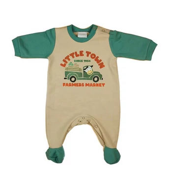 Belül bolyhos hosszú ujjú baba rugdalózó bocis mintával
