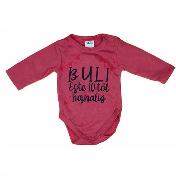 A "Buli este 10-től hajnalig" feliratos baba body a legédesebb választás a kis bulizó számára. A mályva színe kiválóan illeszkedik a vidám felirathoz, míg a vállon található nikkelmentes patent megkönnyíti az öltöztetést. Hosszú ujjaival tökéletesen meleg tartja a babát, legyen szó akár egy otthoni buliról, akár egy hosszú alvásról. A 100% pamut anyaga pedig garantálja, hogy puha és kényelmes viselet legyen, ami nem irritálja a bőrt. Minőségi magyar termék, amelyben a babád éppolyan jól fogja magát érezni, mint te a tánctéren.