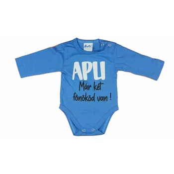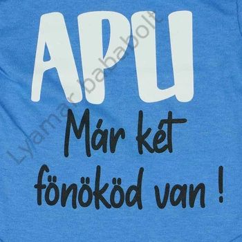 Öltöztesse babáját ebben a közepesen kék színű, feliratos hosszú ujjú bodyban, amely a legkisebbek kényelmét szem előtt tartva készült. A vállon elhelyezett patentok segítségével könnyedén fel- és levehető, így a pelenkázás is gyerekjáték lesz. A 100% pamut anyag biztosítja a puhaságot és a hosszan tartó komfortot, amire a babák bőre szüksége van. Ez a minőségi magyar termék az Andrea Kft. gondos kezei alatt készült, és az I. osztályú minősítésének köszönhetően biztos lehet benne, hogy a legjobbat választja gyermekének. A termékben felhasznált patent nikkelmentes, így a nikkelre érzékeny babák bőrét sem irritálja.