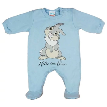 Fedezd fel a varázslatot ezzel a hosszú ujjú, Thumper nyuszi mintás baba rugdalózóval! Ez a rugdalózó egy eredeti Disney termék, kifejezetten a kis fiúk számára tervezve. A kék szín és a Thumper minta teszi igazán különlegessé, míg a 100% pamut anyag biztosítja a kényelmet és a tartósságot. Könnyű és vékony, de mégis képes melegen tartani a babát egész nap. A vállán lévő patentok és a lába közötti patentos megoldás megkönnyíti a pelenkázást és az öltöztetést. Jól mosható és szín- és formatartó. Fontos megjegyezni, hogy ez a modell lábfej nélküli, hogy a baba lába szabadon mozoghasson. A rugdalózó Magyarországon készült és nikkelmentes patenttal rendelkezik, így nem okoz allergiás reakciót a babáknál. Adja meg a legjobbat a kisfiának ezzel a Thumper nyuszi mintás rugdalózóval!
