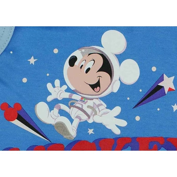 Engedd meg, hogy a kisfiad a csillagok közé repüljön ezzel a bájos, űrhajós Mickey egér mintával díszített rugdalózóval! Ez az eredeti Disney termék garantáltan mosolyt csal majd a picur arcára, miközben kényelmesen mászkál vagy játszik benne. A kék színű, ujjatlan kialakítású rugdalózó tökéletes a melegebb napokra, de egy hosszú ujjú bodyval együtt a hűvösebb időben is remek választás. A vállán található nikkelmentes patentok megkönnyítik a fel- és levételt, és nem okoznak allergiás reakciót a fémekre érzékeny kisfiúknál. A rugdalózó 100% pamutból készült, így bőre szabadon lélegzhet és nem izzad be. A kiváló minőségű, magyar termék a hazai Andrea Kft. gyártmány, melynek minden terméke az I. osztályú minősítést kapta. Válaszd ezt a rugdalózót, ha szeretnéd, hogy a kisfiad kényelmesen és stílusosan fedezze fel a világot!