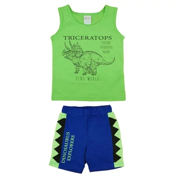 Vidám dinoszauruszos mintával ellátott kisfiú nyári szett, amelynek minden részlete a kényelemről és a stílusról szól. A szettben található egy vékony pamut anyagból készült atléta, mely tökéletes választás a nyári hőségben. A minta vidám és színes, ami garantáltan felvidítja a kicsik napját. Hozzá illik a gumis derekú rövidnadrág, amely oldalt tarajjal díszített és dinoszauruszos felirattal van ellátva. A szett 100% pamutból készült, ami lélegző anyag, ezért ideális a meleg napokra. A minőségi magyar termék az Andrea Kft-től származik, amely I. osztályú minőséget képvisel. A zöld szín pedig remekül kiegészíti a dinoszauruszos mintát. Varázsolja nyárrá a kisfiúk napjait ezzel a vidám, kényelmes szettel!