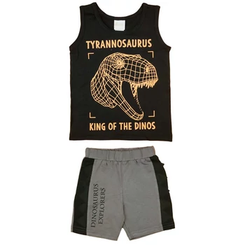 Fedezd fel a dinoszauruszok világát ezzel a vidám, dinoszauruszos mintával ellátott kisfiú nyári szettel! A vékony pamut atléta tökéletes választás a meleg nyári napokra, a dinoszauruszok pedig garantáltan lekötik a kicsiket. A szettet kiegészítő rövidnadrág a gumis derekának köszönhetően kényelmes viselet, míg az oldalt található taraj pedig tovább fokozza a dinoszauruszos hangulatot. A 100% pamut anyag minőségi és bőrbarát, így a gyerkőc egész nap szabadon szaladgálhat benne anélkül, hogy irritáció lépne fel. És a legjobb benne? Mindez egy magyar termék, amelyet a hazai Andrea Kft. gyártott. Adj esélyt a minőségi, hazai termékeknek és lepd meg a kicsit ezzel a dinoszauruszos nyári szettel!