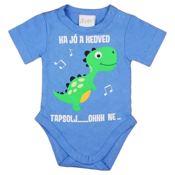 A dinók hódítanak! Engedd, hogy csemetéd is csatlakozzon a kis dinórajongók táborához ezzel a rövid ujjú, vállon patentos dinós baba bodyval. A kedves dinós minta és a felirat garantáltan elvarázsolja a kicsiket, miközben a 100% pamut anyag biztosítja a kényelmet és a puhaságot a nap minden percében. Ez a body nem csak stílusos, de praktikus is. A vállon található patent segít a könnyed öltözködésben, így a reggeli készülődés is gyerekjáték lesz. Minőségi magyar termék, amelyet a hazai Andrea Kft. készített. Az I. osztályú anyagból készült body nem tartalmaz nikkelmentes patentot, így teljesen biztonságos, még az allergiára hajlamos babák számára is. Teddd boldoggá a kis dinórajongót ezzel a baba bodyval, ami kényelmet és stílust kölcsönöz a mindennapokhoz.