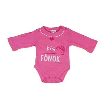 Ez a világos rózsaszínű, "Kis főnök" feliratos hosszú ujjú baba body tökéletes választás a legkisebb vezetők számára! A vállon található patentos kialakítás egyszerűvé és gyorsvá teszi az öltöztetést, így több idő marad a játékra és a szeretgetésre. Kényelmes, 100% pamut anyagból készült, ami puha és gyengéd a babák érzékeny bőréhez. A minőségi magyar termék a legmagasabb, I. osztályú minősítést kapta. Az Andrea Kft. gondosan gyártotta Magyarországon, az EU-ban. Az életkor csak irányadó, mivel minden baba különböző. A nikkelmentes patenttal készült termék nem vált ki allergiás reakciót az erre érzékeny babáknál. Ezzel a bodyval a kis főnök stílusosan és kényelmesen élvezheti a napját!