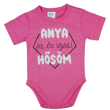 Varázsolj egy mosolyt az édesanyád arcára ezzel a cuki, rövid ujjú "Anya az én igazi hősöm" feliratos bababodyval. A gyengéd, rózsaszínű színvilág és a szeretetteljes üzenet tökéletes ajándék minden kis hercegnő számára. A vállon található patentok megkönnyítik az öltözködést, így a reggeli rutin is könnyedén, stressz nélkül telik. Ez a body nem csak szép, de praktikus is: 100% pamutból készült, ami garantálja, hogy a baba bőre szabadon lélegezzen, miközben megtartja az ideális testhőmérsékletet. Minőségi magyar termék, amit a hazai Andrea Kft. gyárt - a baba egészsége érdekében nikkelmentes patentokat használnak, így a termék nem vált ki allergiás reakciót az erre érzékeny babáknál. Ez a bababody tökéletes választás, ha valami különlegeset és egyedit szeretnél a babádnak. Egy olyan darab, ami minden nap emlékeztet rá, mennyire szeretjük őt - és mennyire hálásak vagyunk az életünkben lévő igazi hősnek, az édesanyánknak.