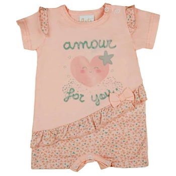 Rövid ujjú kislány baba napozó szívecskés mintával