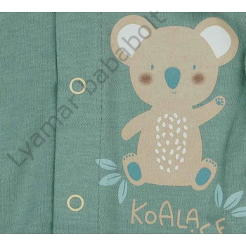 Öltöztesse kisbabáját ebbe a kedves zöld hosszú ujjú rugdalózóba, melynek elbűvölő koalás mintája van! Ez a rugdalózó uniszex, így tökéletes választás lehet kisfiú vagy kislány számára egyaránt. Kiváló minőségű magyar termék, melyet a Andrea Kft. készített. A rugdalózó anyaga 90% pamut és 10% elasztán, amely biztosítja a kényelmet és a tartósságot. Az elöl lévő patentok segítségével könnyedén fel- és le lehet venni a ruhát a babáról. Figyelembe véve az érzékeny bőrű babákat, a termék nikkelmentes patenttal készül, így nem vált ki allergiás reakciót. Tegye még kényelmesebbé és vidámabbá babája napjait ezzel a szuper koalás rugdalózóval!
