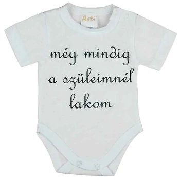 Rövid ujjú "még mindig a szüleimnél lakom" feliratos baba body