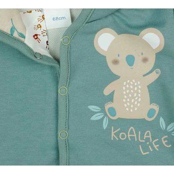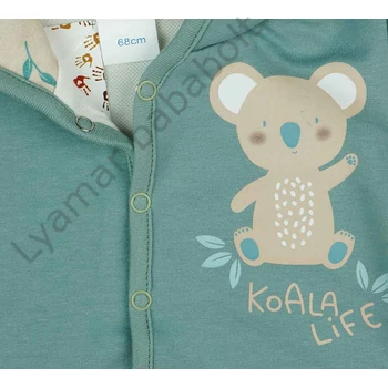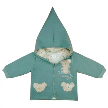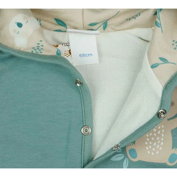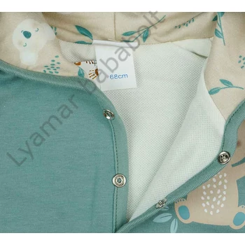 Kedves kisbabáját melegen tartja ebben a bájos macis mintás kocsikabátban, amely igazi magyar minőséget képvisel. Az unisex zöld színű, kapucnis kabát finoman nyomott és hímzett macis mintával van díszítve, mely minden kisgyermek szívét megdobogtatja. Az elöl található nikkelmentes patentok biztonságosak a nikkelérzékeny babák számára is, így ön nyugodtan használhatja. A 90% pamut és 10% elasztán anyagösszetétel pedig garantálja a kényelmet és tartósságot. Válassza ezt a minőségi magyar terméket, és öltöztesse babáját stílusosan és biztonságosan!