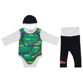 Öltöztesse fel kisfiát ezzel a hihetetlenül cuki, 3 részes Verdák mintás babaszettel. Az eredeti Disney termék szett tartalmaz egy hosszú ujjú, vállon patentos bababodyt, amit izgalmas Verdák minta díszít. A szett része továbbá egy belül bolyhos babanadrág is, ami szintén a kedvenc Verdák mintával van ellátva. A harmadik darab pedig egy belül bolyhos babasapka, ami tökéletes védelmet nyújt a hideg napokon. Minőségi magyar termék, melynek anyaga 100% pamut, míg a nadrág és sapka anyaga 90% pamut és 10% elasztán. Az I. osztályú terméket a magyarországi Andrea Kft. gyártja. A termék nikkelmentes patenttal készül, így az erre érzékeny babáknál nem vált ki allergiás reakciót. A szett kék színben pompázik, ezáltal tökéletes választás minden kis autórajongó számára.