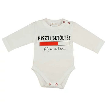 Feliratos hosszú ujjú baba body Feliratos, vállon patentos hosszú ujjú baba body. Minőségi magyar termék |