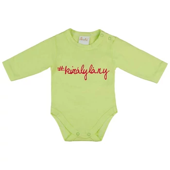 Kedves kisbabának keresel egy kényelmes body-t, ami nem csak jól néz ki, hanem minőségi is? Akkor a feliratos hosszú ujjú baba body-t neked találtuk ki! A baba body zöld színe igazán vidám, a felirat pedig különleges és egyedi megjelenést kölcsönöz a ruhának. A body anyaga 100% pamut, amely lágyan simul a baba bőréhez, nem okoz irritációt, és könnyen tisztítható. A vállon található patentoknak köszönhetően a fel- és levétel is gyerekjáték lesz. A minőségi magyar terméket az Andrea Kft., elkészítette, így biztos lehetsz benne, hogy egy olyan terméket vásárolsz, amit szeretettel és gondossággal készítettek. A body nikkelmentes patenttal készült, így az erre érzékeny babák is nyugodtan viselhetik. A kisbabák bőre érzékeny és könnyen irritálódik, ezért fontos, hogy olyan ruhákat válasszunk számukra, amelyek nem tartalmaznak allergén anyagokat. Öltöztesd a kisbabádat kedves, minőségi és kényelmes ruhába, válaszd a feliratos hosszú ujjú baba body-t!