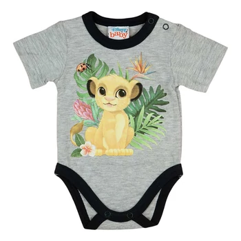 Fedezd fel a mesés Oroszlánkirály világát ezzel a bájos rövid ujjú bababodyval! A szürke színű, vállon patentos kialakítású bodyn egy vidám oroszlánkirály minta díszeleg, ami garantáltan elvarázsol minden kisfiút. Az eredeti Disney termék, Magyarországon, Andrea Kft. által készült, kiemelkedő minőségben. A body anyaga 100% pamut, amely rendkívül kényelmes és puha a bőrnek, így a kicsik egész nap jól érezhetik magukat benne. Az I. osztályú minőségű termék nikkelmentes patenttal készül, így nem okoz allergiás reakciót az erre érzékeny babáknál. Öltöztesd a kicsit a Disney varázslatos világába, és hagyd, hogy a mesék hősei kísérjék végig a napját!
