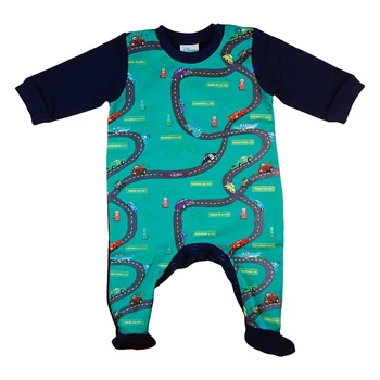 Belül bolyhos hosszú ujjú rugdalózó autós mintával