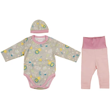 Ragadjon meg minden pillanatot a baba életéből ezzel a 3 részes babaszettben, amely állatos mintákat visel. A szett egy hosszú ujjú bodyból, egy pár babanadrágból és egy baba sapkából áll, amelyek mindegyike a legfinomabb, 100% pamutból készült. A body vállán található patentok nikkelmentesek, így nem okoznak allergiás reakciót az érzékeny bőrű babáknál. A nadrág 90% pamut és 10% elasztán összetételű, ami rugalmasságot és kényelmet biztosít a baba mozgásához. Mindez egy magyarországi gyártótól, az Andrea Kft.-től származik, így biztos lehet benne, hogy a legjobb minőségű terméket kapja. Engedje, hogy a baba stílusosan és kényelmesen fedezze fel a világot ezzel a 3 részes babaszettel!