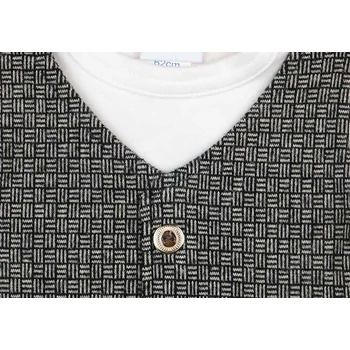 Kényeztesse kisfiát ezzel a csodás, hosszú ujjú, mellényes bababodyval, ami nem csak stílusos, de rendkívül kényelmes is. A szürke színű body kiváló minőségű, 100%-ban pamut anyagból készült, ami különösen puha és bőrbarát. A vállon található, nikkelmentes patentok a könnyű öltöztetést segítik, mindeközben megelőzik az allergiás reakciókat a babák érzékeny bőrén. A bodyt a hazai piac egyik megbízható szereplője, az Andrea Kft. gyártotta, így biztos lehet benne, hogy gyermeke a legjobb minőségű terméket viseli. Vigyázzon kisfiára a legjobb magyar termékekkel!